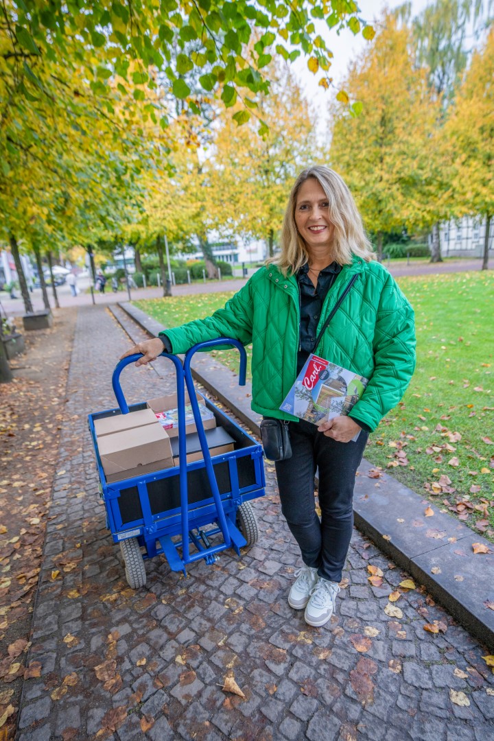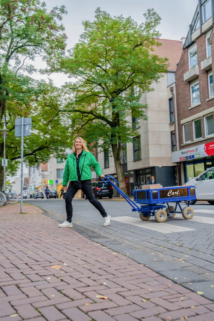Monat für Monat, bei Wind und Wetter, macht sich unsere Frohnatur Michaela auf den Weg durch die Gütersloher Innenstadt, um die druckfrischen CARL an ihre Verteilstellen zu liefern. Wie zu alten Zeiten ausgestattet mit einem Bollerwagen, fährt sie die mehr als 200 Auslagestellen in der Gütersloher Innenstadt direkt an.
