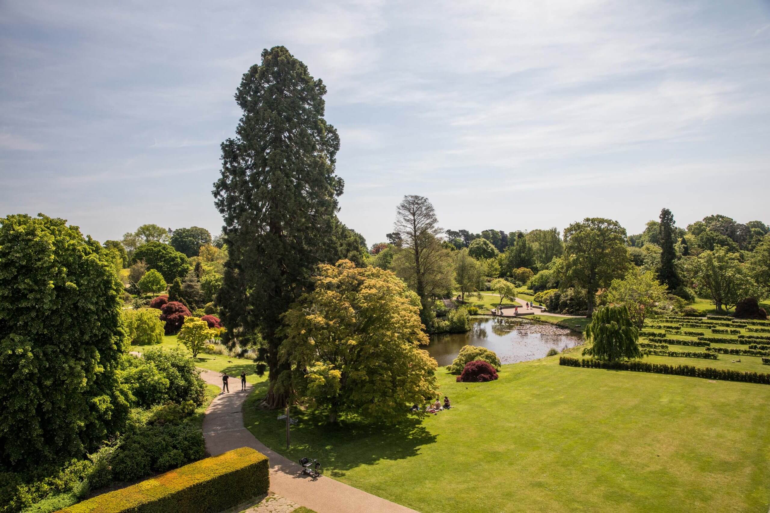 Das Herrenhaus wurde 1590 von Sir Edward Culpeper erbaut. Seit 2022 ist es komplett eingerüstet und wird umfassend renoviert. So konnte ich bei meinem Besuch nur das Küchengebäude mit dem Restaurant mit der Originalfassadenanmutung fotografieren. Seit 1963 gehört das gesamte Ensemble dem National Trust. Mit der Gestaltung des Gartens verbrachte der spätere Lord Wakehurst seit 1903 fast 33 Jahre. Die Anlage ist etwa 2 km² groß und umfasst verschiedene Gartenräume. Dazu zählen unter anderem der ummauerte Garten (Walled Garden), der Villengarten, der Wintergarten und ein Wassergarten. Je weiter man sich vom Herrenhaus entfernt, desto landschaftlicher wird der Garten. Hier gibt es große Waldgebiete mit z.B. einer wichtigen Koniferensammlung, dem Pinetum oder der Nationalsammlung von Birken. Im Westen, am Rand des Geländes, befindet sich der Westwood Lake, ein großer See.