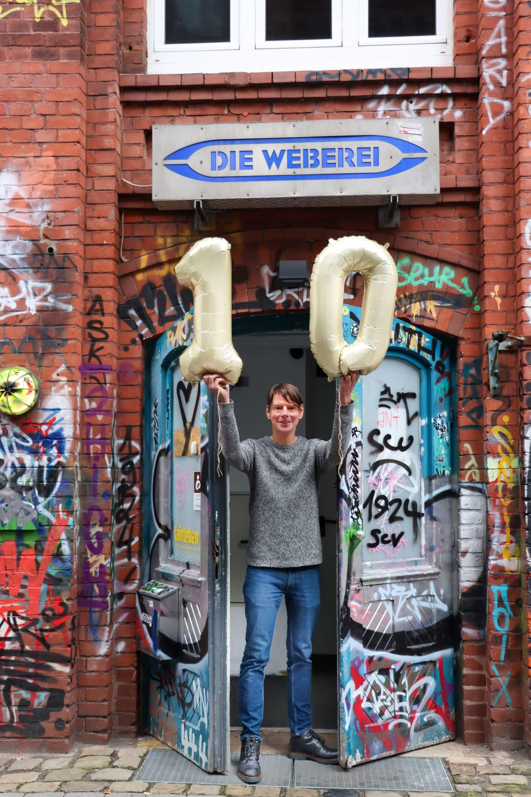 So lange hat in der 40jährigen Weberei-Geschichte noch niemand durchgehalten: Steffen Böning öffnet mit seinem Team seit 10 Jahren 365 Tage im Jahr die Türen zum heimischen Kulturzentrum. In der Zeit hatte die Weberei über eine Millionen Besucher, über 10.000 Raumnutzungen, viele tausend Konzerte, Lesungen, Shows und andere Veranstaltungen. Zudem ist sie Arbeitgeber für viele hunderte Kulturschaffende, Schüler, Studenten, Techniker, DJs, Freelancer und andere Menschen.