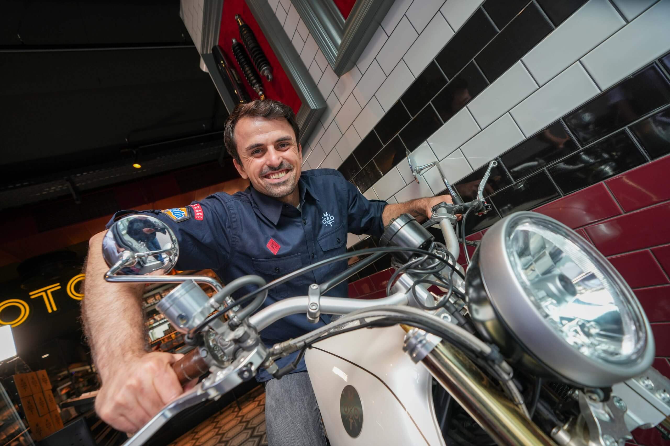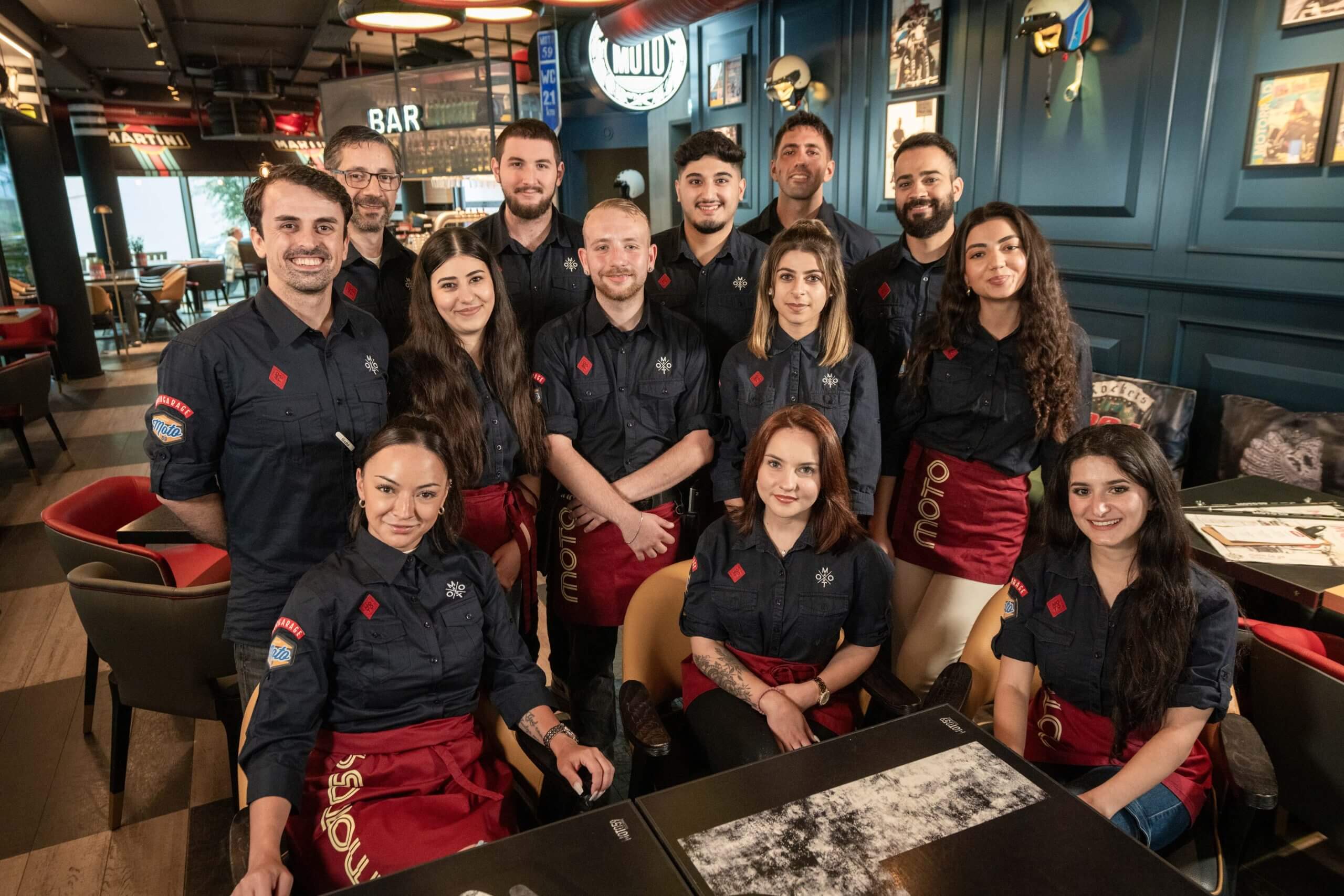 Die Betriebsinhaber Adrian Molliqaj und Hubert Sterzinger I Big Magic Group, der mit seinem Architekturbüro SUPERSTUDIO21 und Geschäftspartner Mirco Cavallo nicht nur die MOTO59 Idee entwickelte, sondern auch das BANKERY in Gütersloh, das Wilma Wunder, das Ahoi-Steffen Henssler und das neue VAPIANO Konzept etc. entwarf, holen sich mit Rodan einen ihrer besten und erfahrensten Mitarbeiter nach Gütersloh.