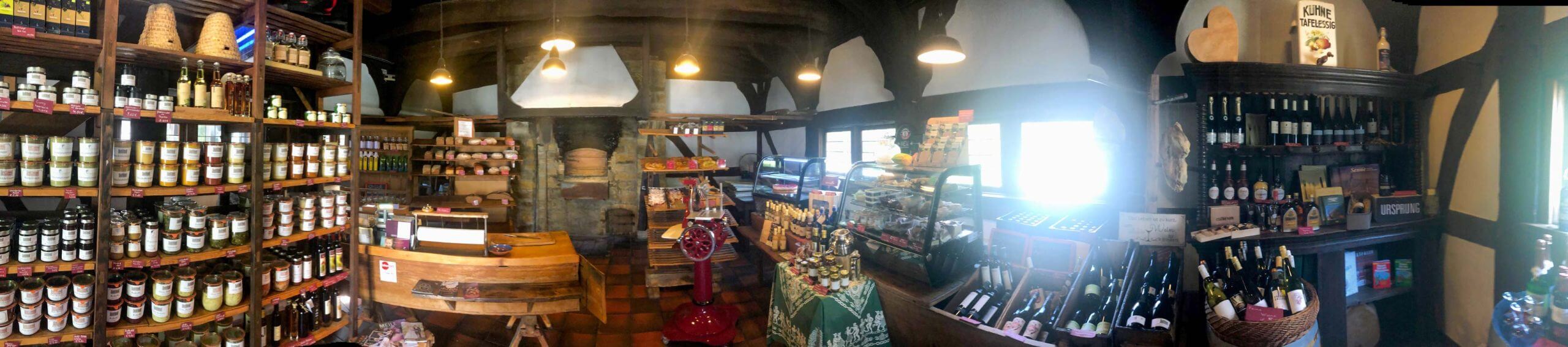 Es duftet köstlich nach frisch gebackenem Brot, als wir den Backspeicher, der seit 1989 wieder voll in Betrieb ist, betreten. Hier in dem alten, holzbefeuerten Lehmofen wird neben Kuchen und Kastenpickert auch das hauseigene Brot-ohne Hefe- welches weit über die Stadtgrenzen hinaus für seine besondere, traditionelle Zubereitung mit Backferment und seinen Genuss und seine gute Bekömmlichkeit bekannt ist, gebacken und verkauft. In den Holzregalen und der Auslage entdecken wir begeistert eine riesige Auswahl an eingeweckten Köstlichkeiten, die den Genuss von Silvios Kreationen auch in den eigenen vier Wänden möglich machen. Ehe wir uns versehen, landen neben Brot und (F)eingemachtem auch hausgemachte Chutneys, hauseigener Honig, regionale Wurstspezialitäten, sowie edle Tropfen in unserem Einkaufskorb. Könntet ihr da widerstehen? Wir nicht!