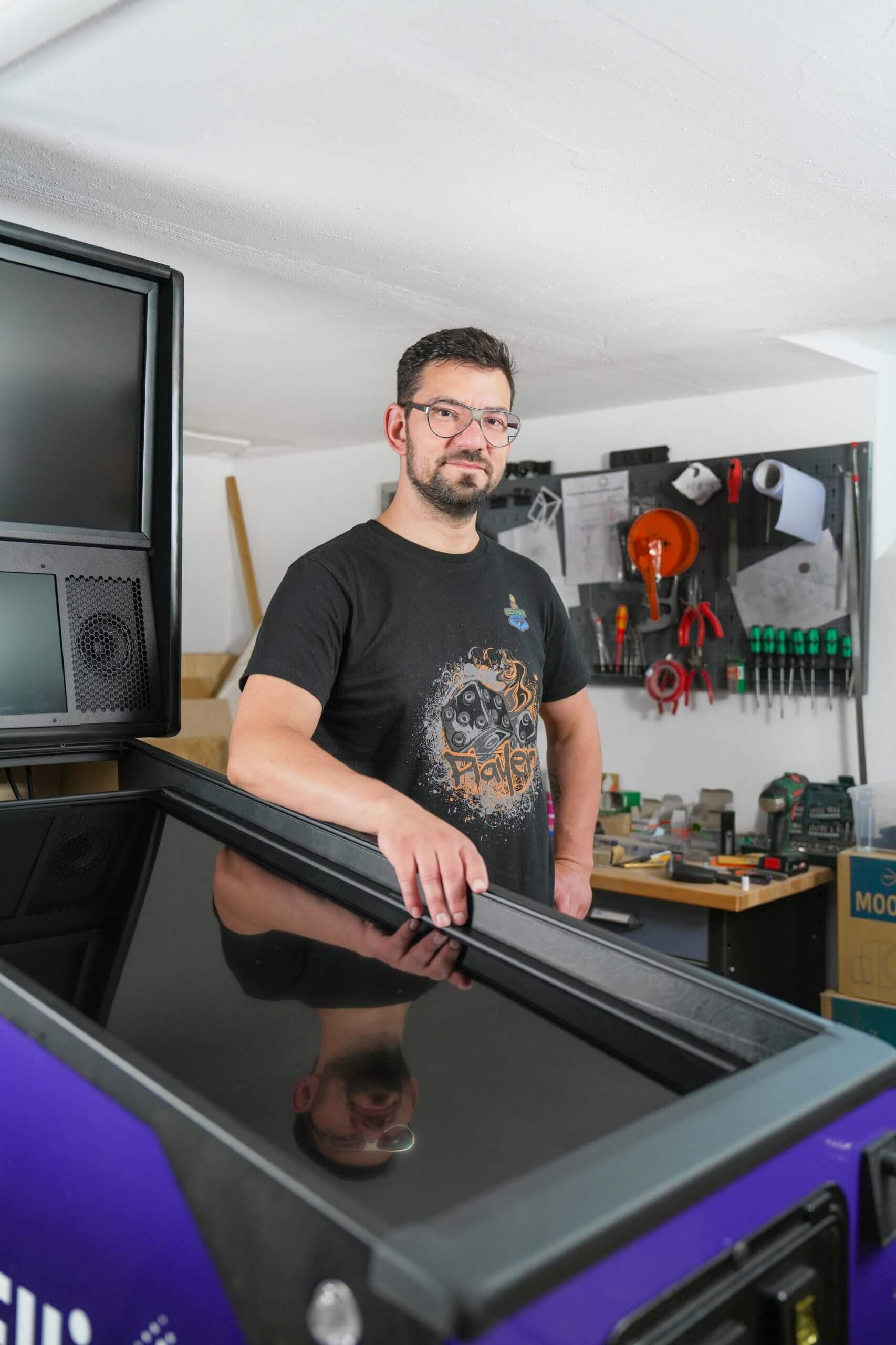 60-100 Arbeitsstunden benötigt Dominik, um ein neues Gerätherzustellen. Dabei bekleidet er viele Rollen selbst in seinem Einmann – Unternehmen. Der ehemalige Tanzlehrerist Tischler, Programmierer, Designer und Manager in einer Person und er kann zurecht stolz sein auf die tollen V-Pins,die jede Menge Spielespaß versprechen und auch halten. Nochmacht Dominik Dancsó das alles allein, vielleicht ändert sichdas irgendwann. Die Nachfrage ist da, weil er momentan in Deutschland der einzige am Markt ist. Wir vom Carl wünschen ihm jedenfalls viel Erfolg für die weitere Zukunft.