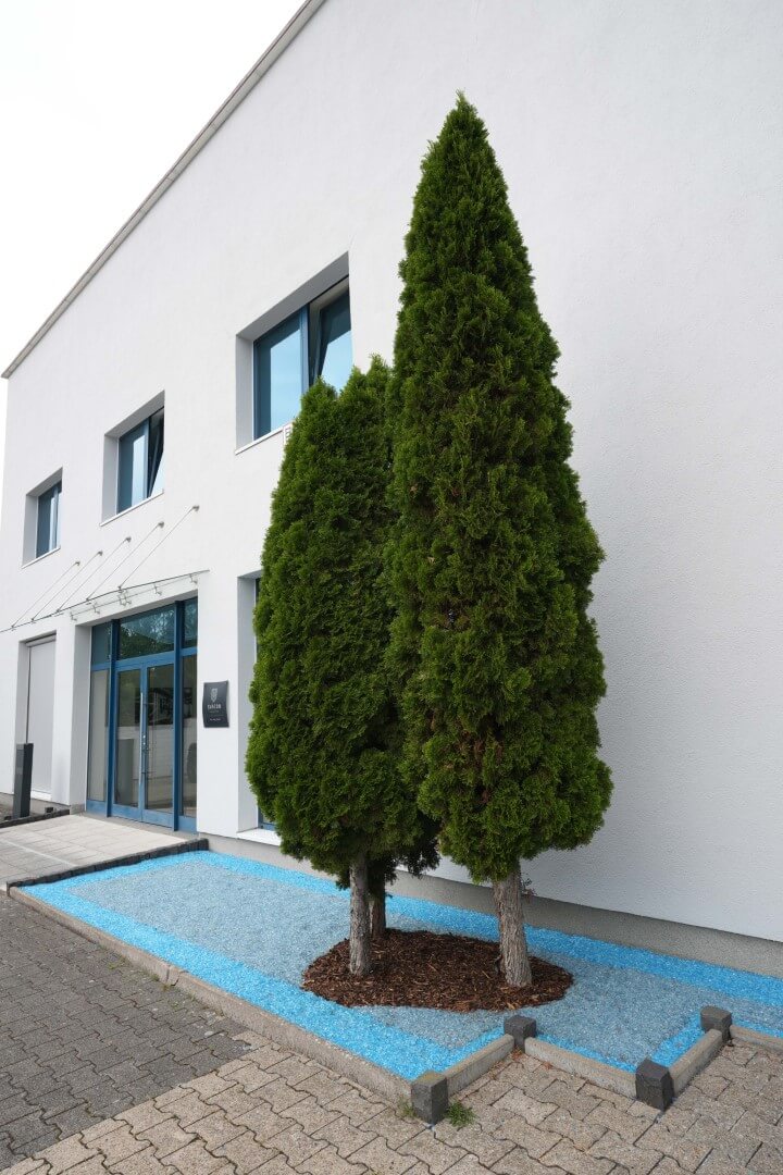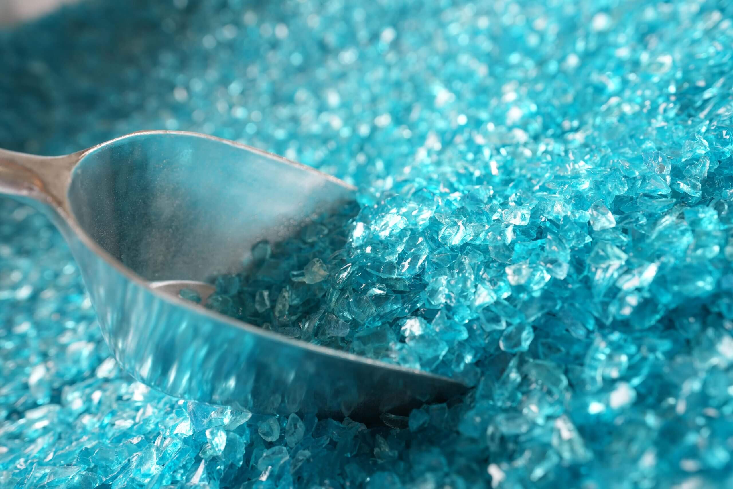 Wie Edelsteine muten die großen Glasbrocken an. In den glatten Flächen bricht sich das Licht und das macht sie zu echten Eyecatchern. Die Brocken sind ein Nebenprodukt aus der Glasschmelze. Der Glaskies, im Recyclingprozess hergestellt/heruntergebrochen, ist übrigens nicht mehr scharfkantig.