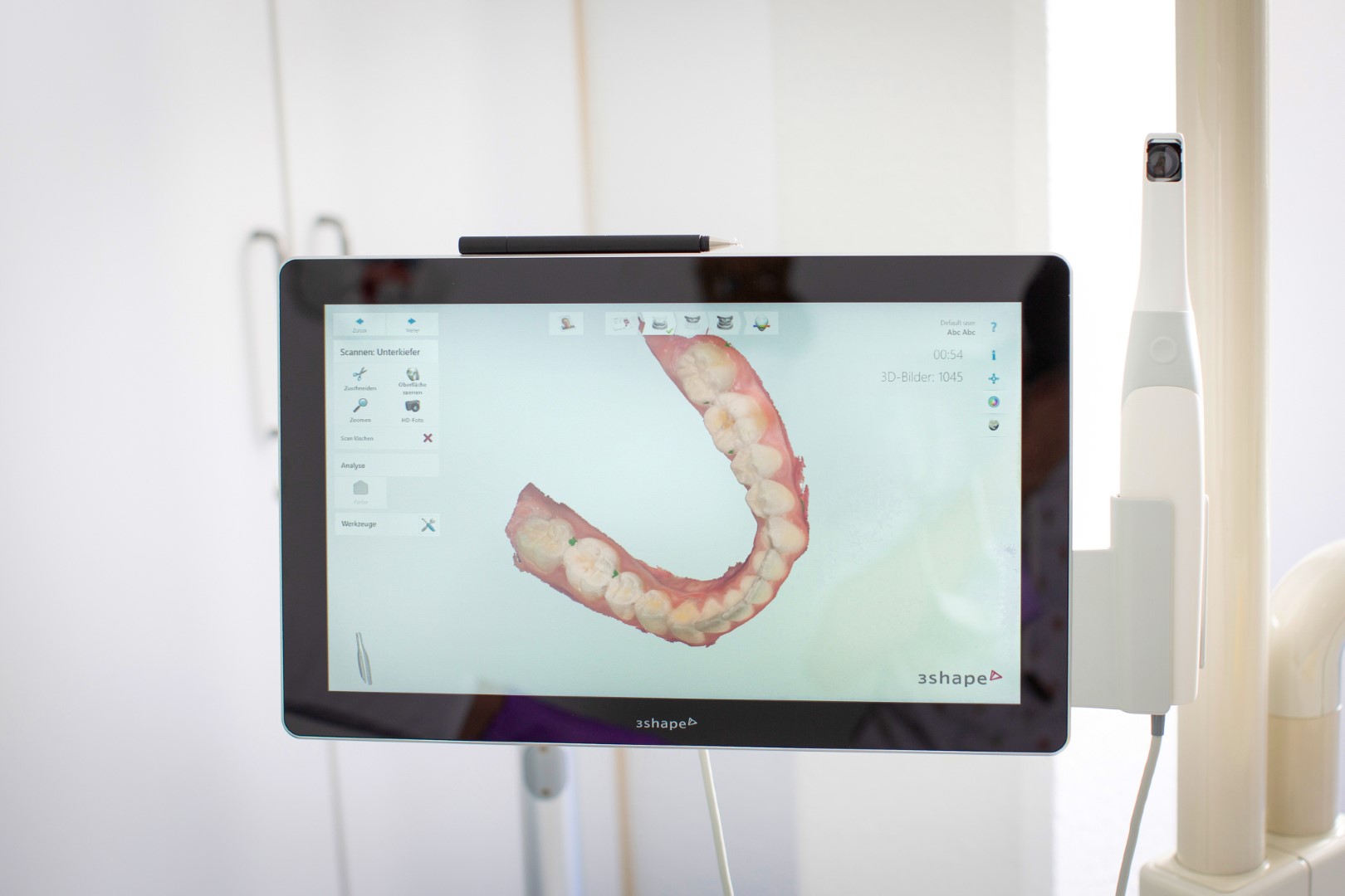Dental Monitoring – eine App mit KI, in der Ihr während der Behandlung nur ein Handyfoto von der aktuellen Zahnstellung hochladen müsst, auf »senden« drückt und schon müsst Ihr erst nach 10 Wochen, statt wie ursprünglich alle 6 Wochen in die Praxis kommen.