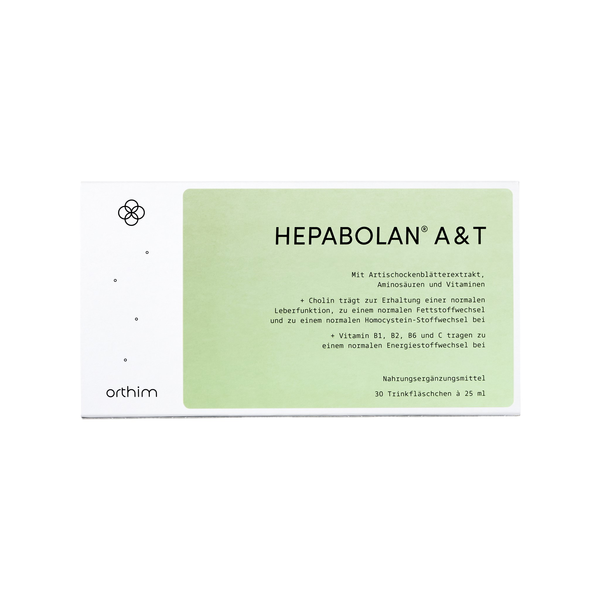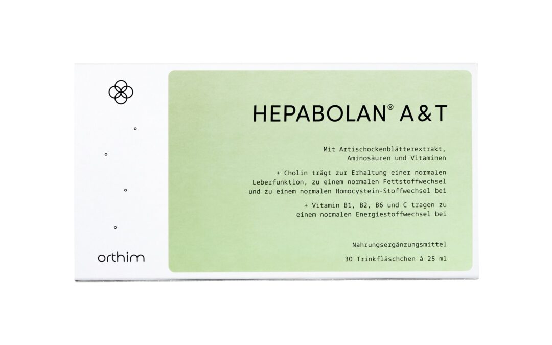 Die kurmäßige Einnahme von HEPABOLAN® A&T Trinkfläschchen der Firma orthim, angereichert mit Artischocke, Taurin, Cholin und wertvollen Aminosäuren, unterstützt die Regeneration der Leber, bringt neuen Schwung und neue Lebenskraft für den gesamten Körper. Ein praktisches Trinkfläschchen HEPABOLAN® A&T zu einer Mahlzeit täglich, trägt mit dem enthaltenden Cholin zur Erhaltung einer normalen Leberfunktion, zu einem normalen Fettstoffwechsel und zu einem normalen Homocysteinstoffwechsel bei.